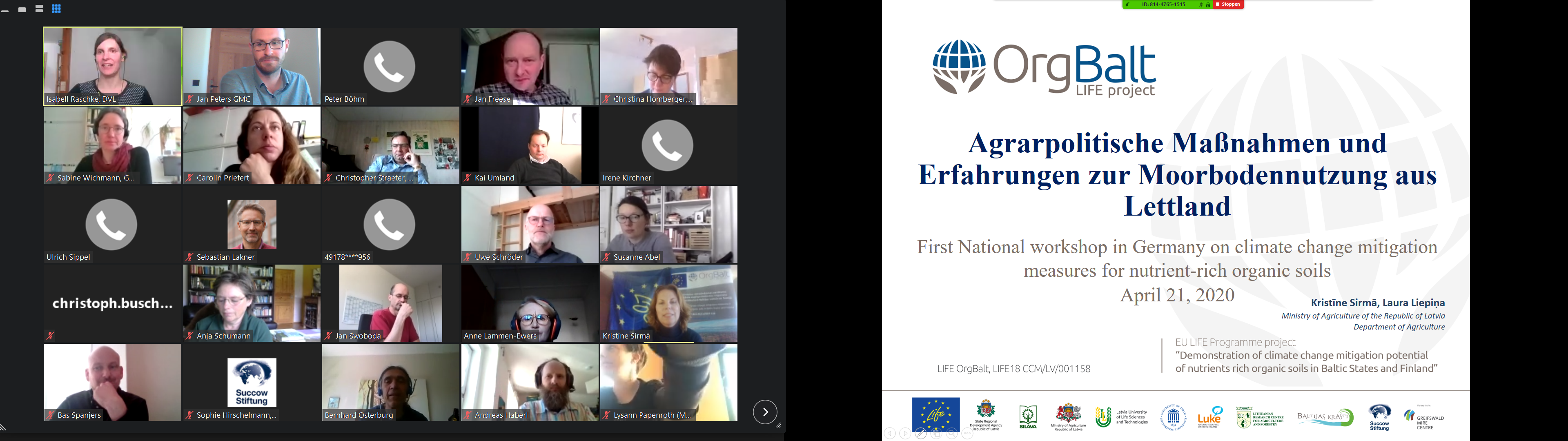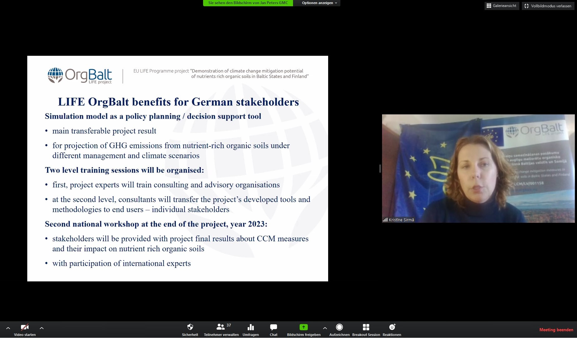des LIFE-Projektes OrgBalt. Jan Peters, LIFE OrgBalt expert, Succow Stiftung / Greifswald Moor Centrum. - Blick über den Tellerrand: Agrarpolitische Maßnahmen und Erfahrungen zur Moorbodennutzung aus Lettland (LIFE OrgBalt). Kristīne Sirmā, LIFE OrgBalt expert, Ministry of Agriculture of the Republic of Latvia.